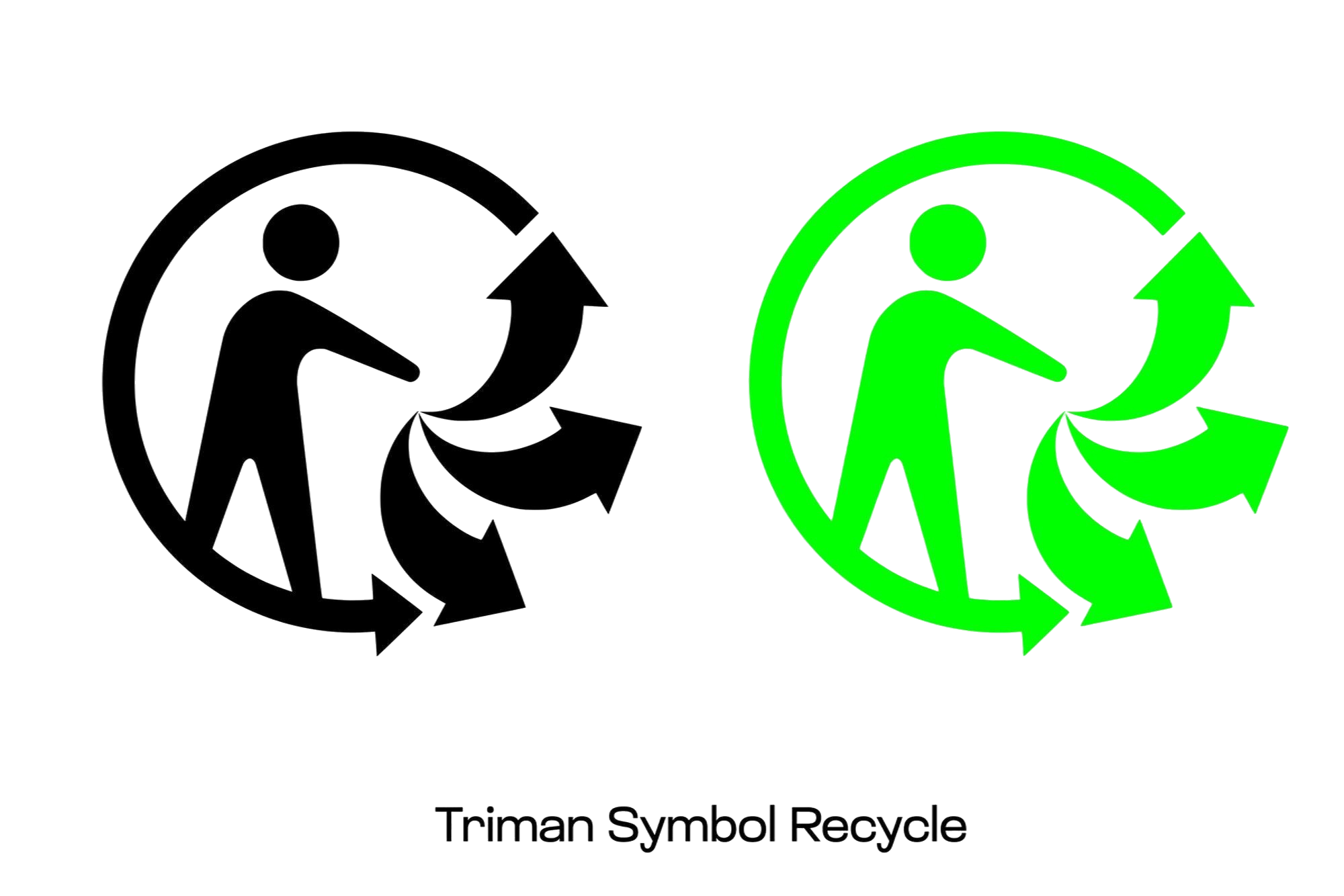 The logo itself consists of three inseparable graphic elements. A human silhouette represents individual consumer action. Three outward-pointing arrows symbolize sorting. A circular arrow surrounding the figure represents recycling. These three elements must always appear together as part of the label Triman — no element can be removed or repositioned.